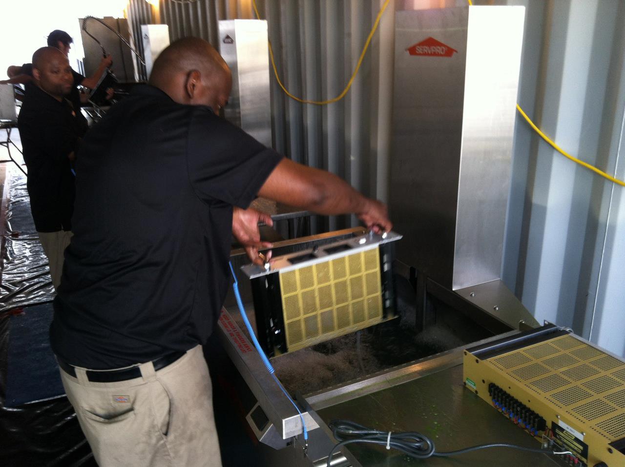 For On Site Cleaning: Customers with sensitive information may not allow for their computers and other electronic equipment to leave their site. All Morantz ultrasonic machines are built on wheels and can be taken to the job site. However, the most portable and least costly machine is the Z-56. For drying, we recommend building a temporary drying room using a dehumidifier, space heater (if necessary) and an air mover. Be sure the drying room still meets proper parameters for temperature and relative humidity. To see photos from one of our on site computer cleaning jobs on our Facebook page, click here. For this job we used plastic sheeting to build a temporary drying space in one corner and it worked very well.